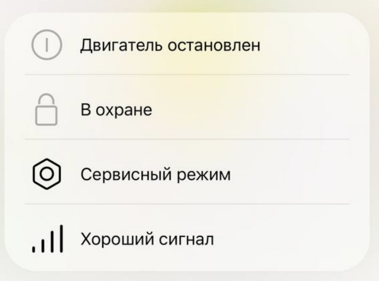 В зависимости от условий договора и комплектации автомобиля доступен различный функционал системы. Охранный и сервисный режимы доступны при установке дополнительного охранного оборудования (метки).
